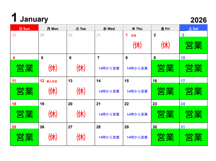 2026年1月3日(土)4日(日)少し営業いたしますm(_ _)m5日(月)(火)より㉁ですが出張福祉理容 開始(`・ω・´)ゞ裏方 お店営業もコソコソ動きますm(_ _)mオナシャス\(^o^)/
